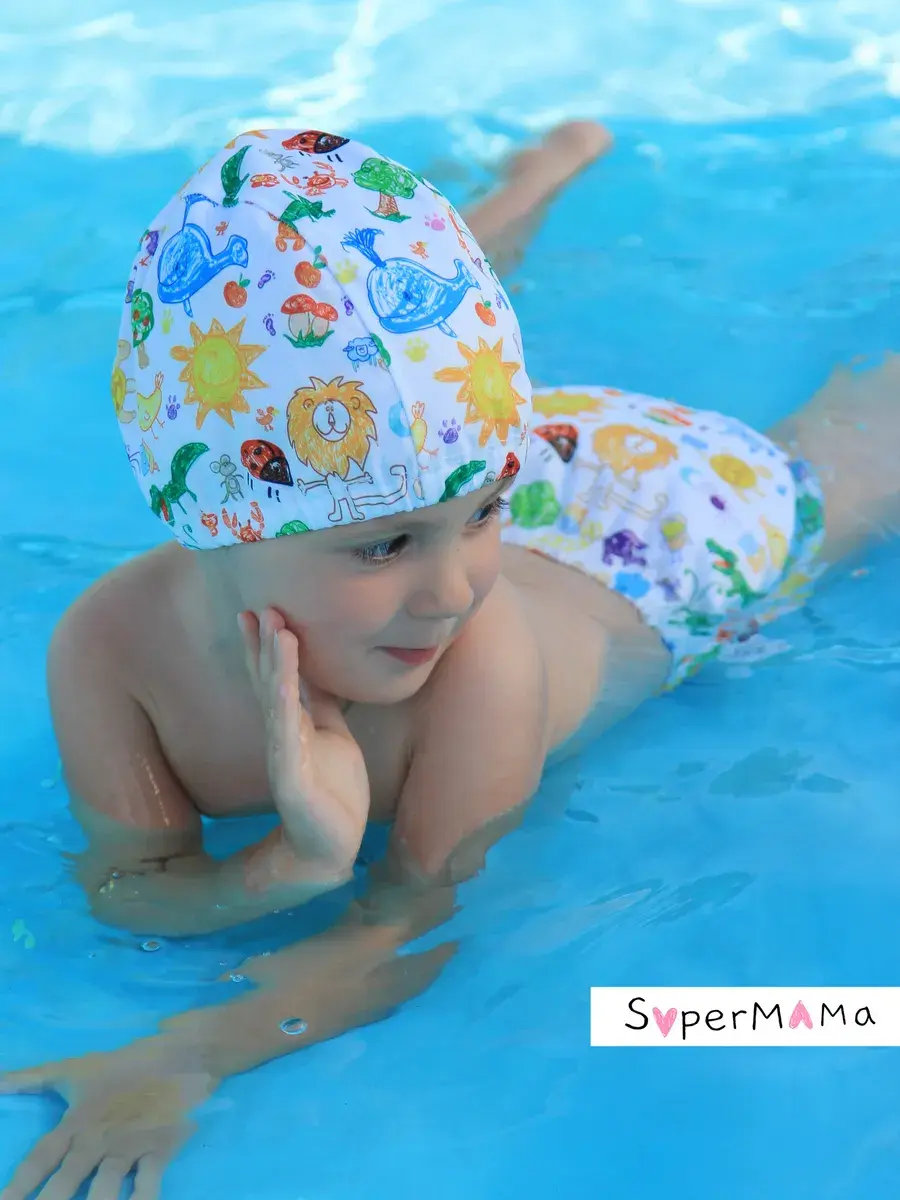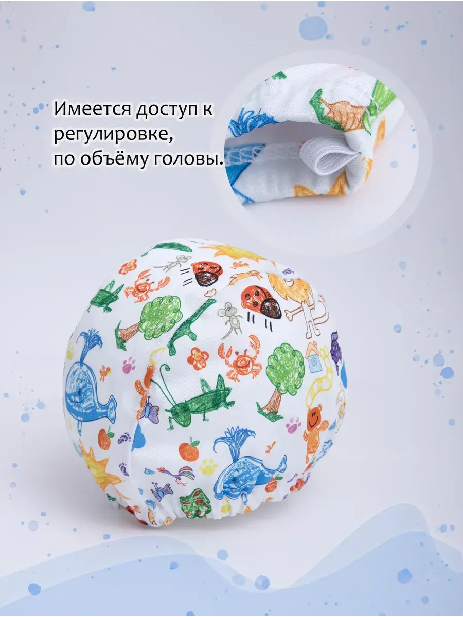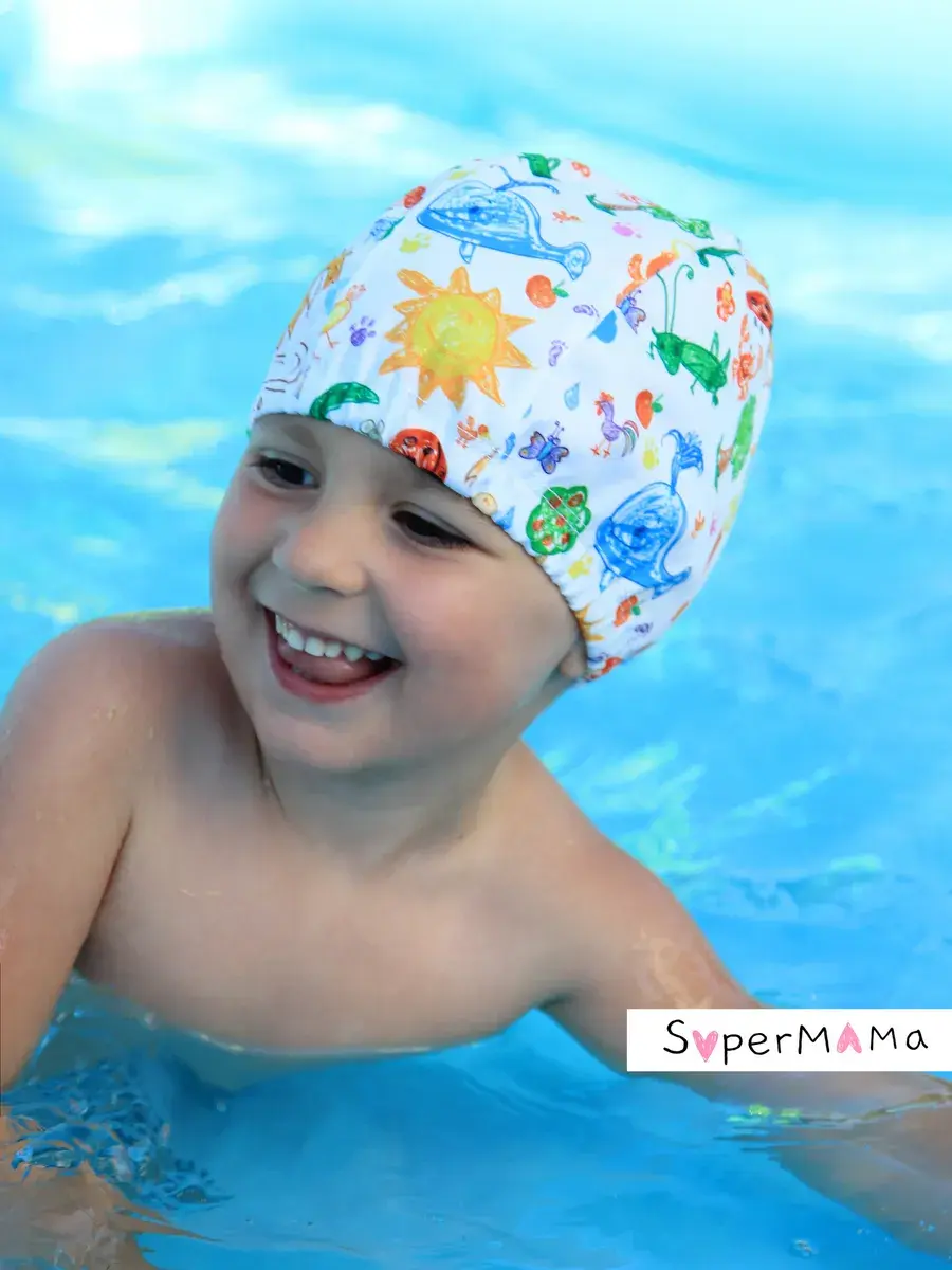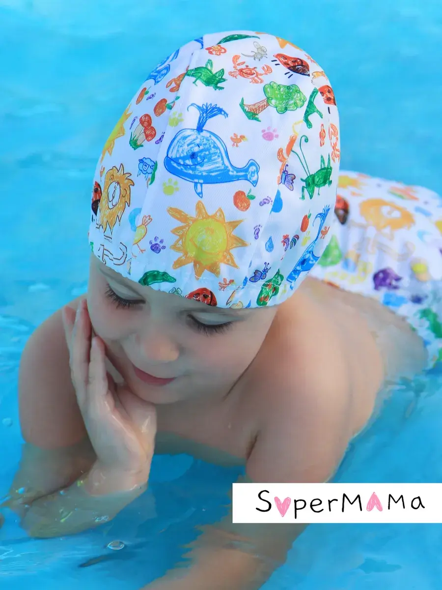 Детская шапочка для плавания идеально подходит для использования в бассейне или море. Она составит отличный комплект к акваподгузникам и непромокаемой сумочке. Основное предназначение шапки для купания – не допустить попадания волос в воду. Имеет мягкую регулируемую резинку по окружности головы. Это поможет вам самостоятельно скорректировать размер, в случае необходимости. Данная модель подойдет как для самых маленьких пловцов, так и для деток до 7-8 лет.