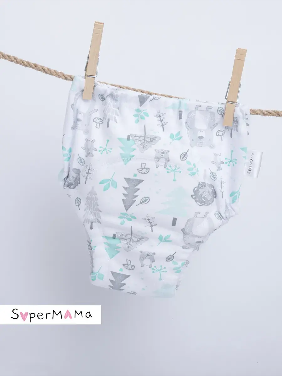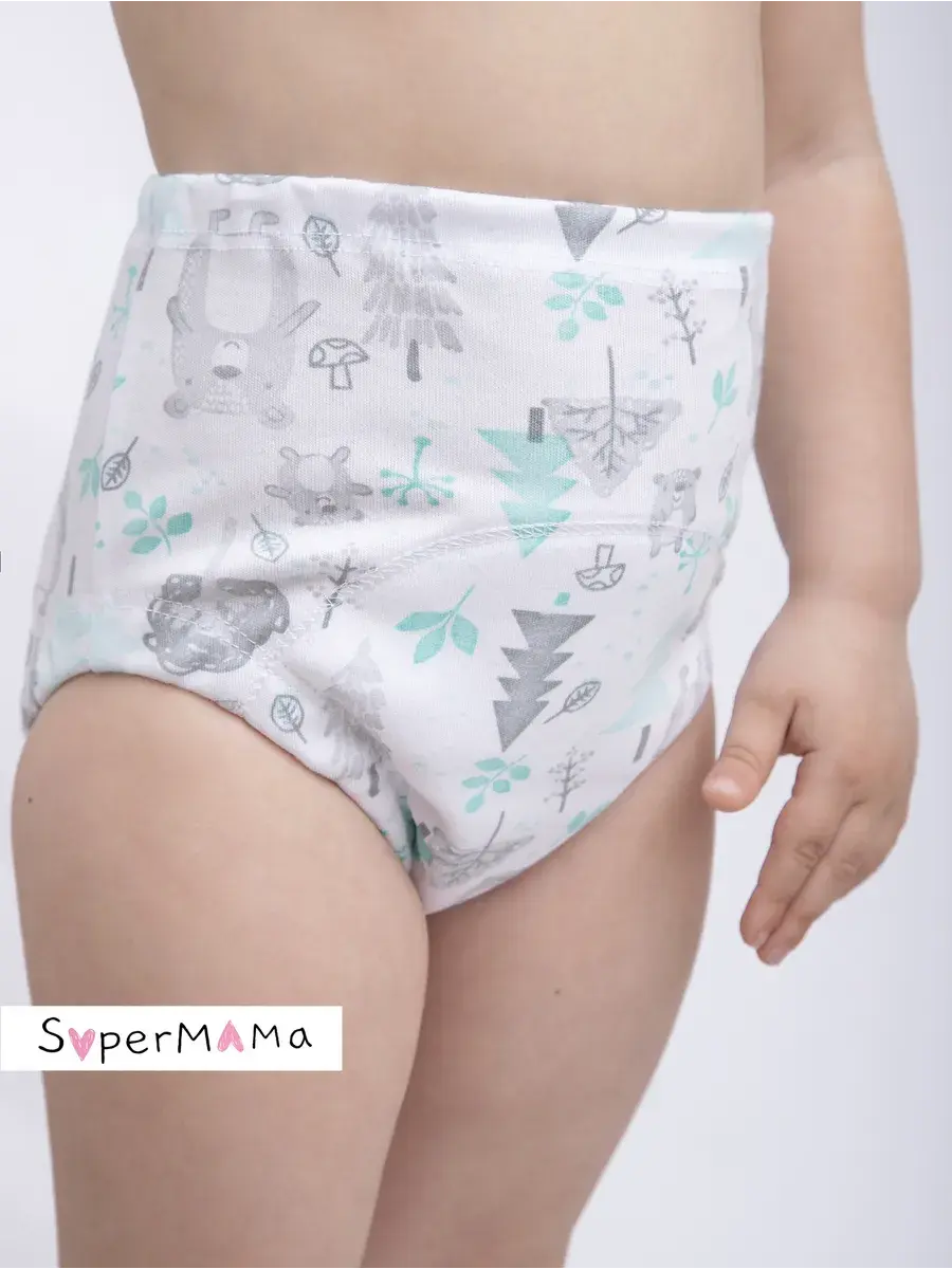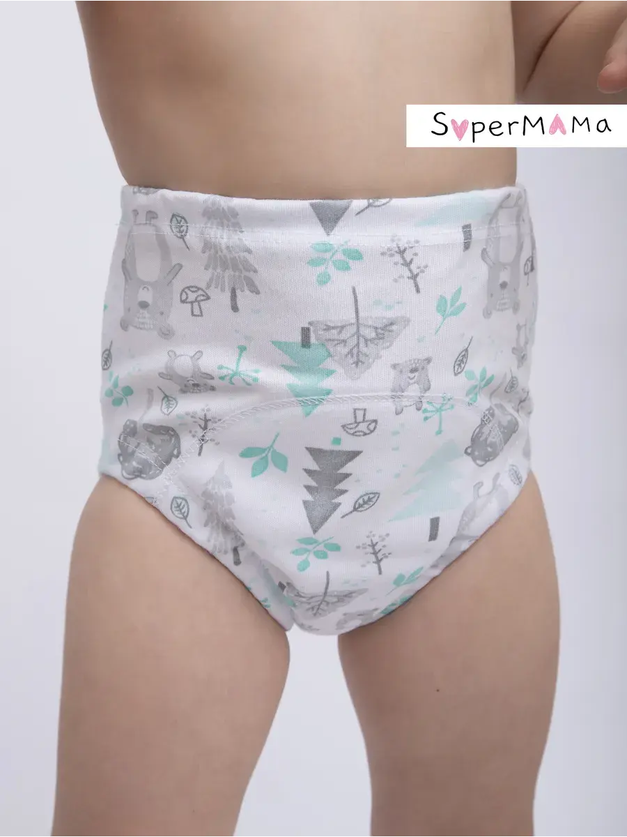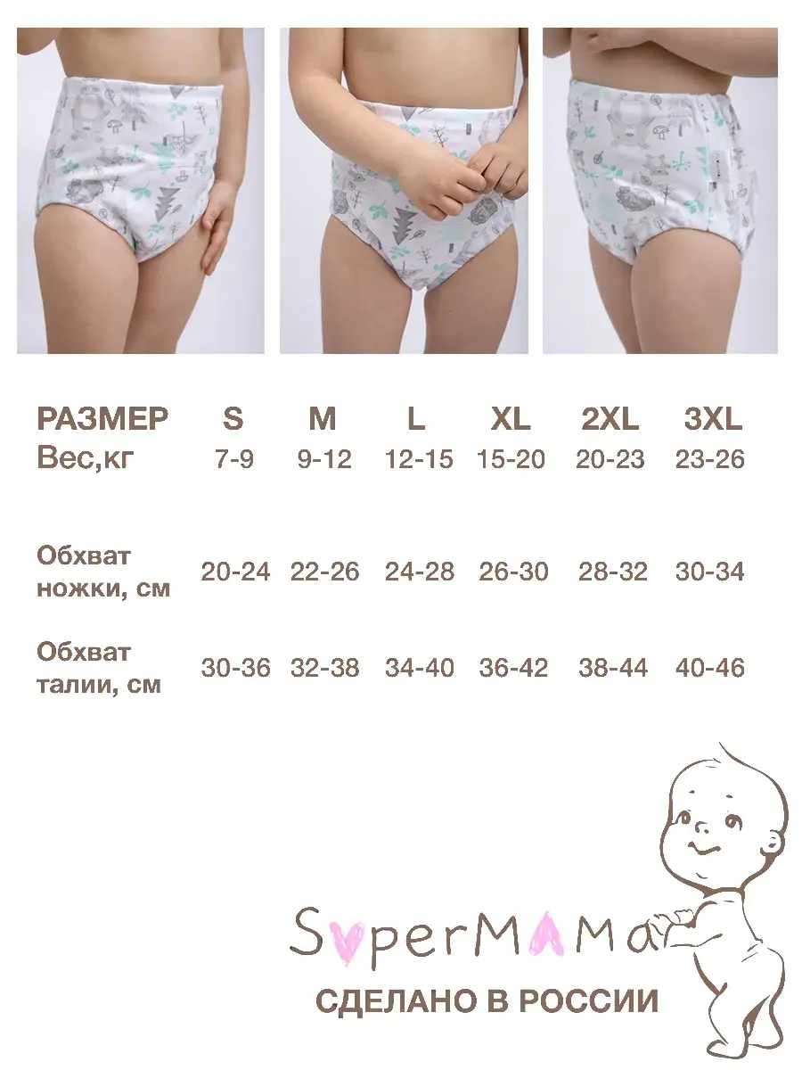 Представляем набор классных трусиков для приучения малышей к горшку, которые имеют хлопковую мембрану и 6 впитывающих слоев муслина. Модель с высокой посадкой отличают хорошие впитывающие свойства. Она отлично защищает от протеканий и дает почувствовать дискомфорт, помогая ребенку осознать взаимосвязь между возникновением естественной потребности и ее «последствиями». Мягкая и эластичная резинка, облегающая ножки и животик, а также дышащий натуральный материал делают белье по-настоящему комфортным в носке. Многослойные слипы прекрасно отстирываются и быстро сохнут, их удобно использовать не только дома, но и в гостях, в поездках. Прикольные модельки с оригинальным принтом подойдут и для девочек, и для мальчиков. В комплект входит три штуки (однотонные и с рисунком). Для удобства при выборе размера рекомендуется учитывать вес и рост детей. Красивые трикотажные многоразовые трусы это настоящая находка для родителей. С ними вы сэкономите семейный бюджет и поможете крохе скорее освоить один из важнейших в раннем возрасте навыков!